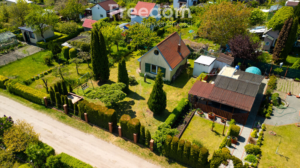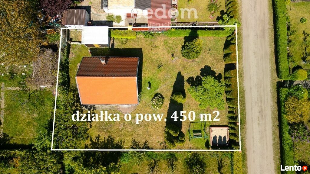 Działka posiada powierzchnię 450 m2, zabudowana jest domkiem