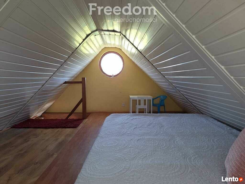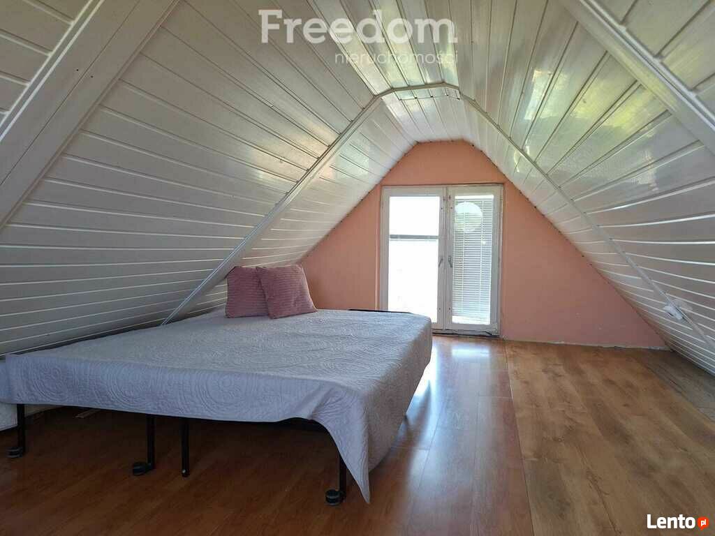 Na piętrze domku jedno duże pomieszczenie z dużymi skosami , dobrze