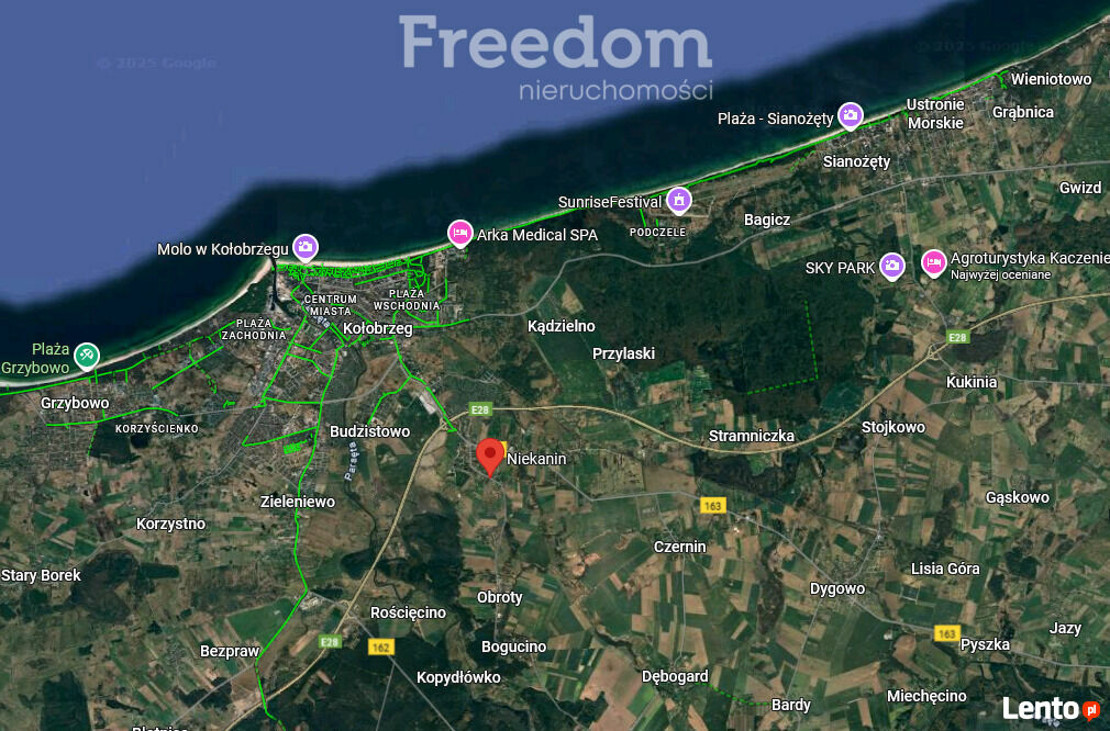 Oferowana Państwu działka położona jest w miejscowości Niekanin.To urokliwa wieś w gminie wiejskiej Kołobrzeg, leżąca tuż przy