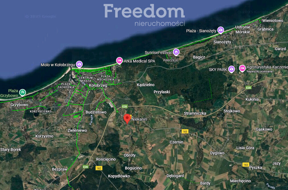 Działki położone są w miejscowości Niekanin. To urokliwa wieś wgminie wiejskiej Kołobrzeg, leżąca tuż przy granicy miasta. Wieś